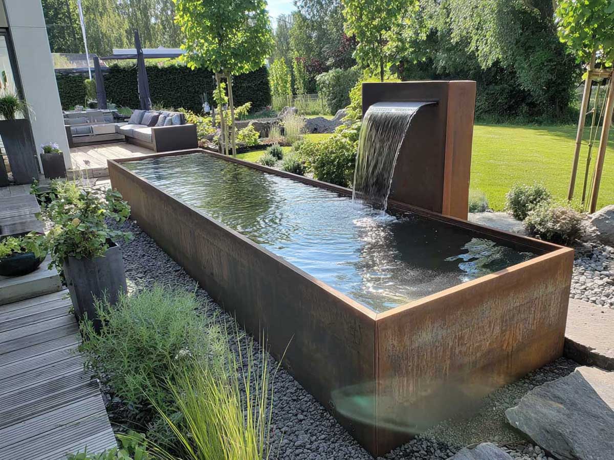 Ein Wasserfall im Garten ist nicht nur ein dekoratives Highlight, sondern ein echtes Erlebnis für die Sinne. Das beruhigende Plätschern des Wassers schafft Entspannung, während moderne Materialien wie Cortenstahl oder Edelstahl für Langlebigkeit und ein exklusives Design sorgen.
