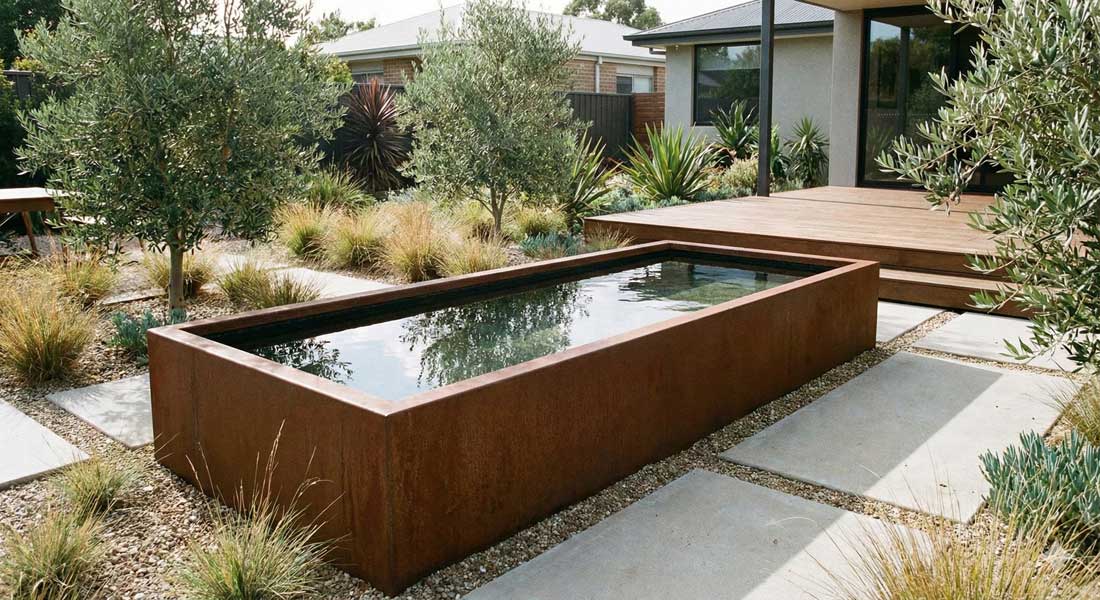 Wasserbecken aus Cortenstahl "Le Grand Bassin R"