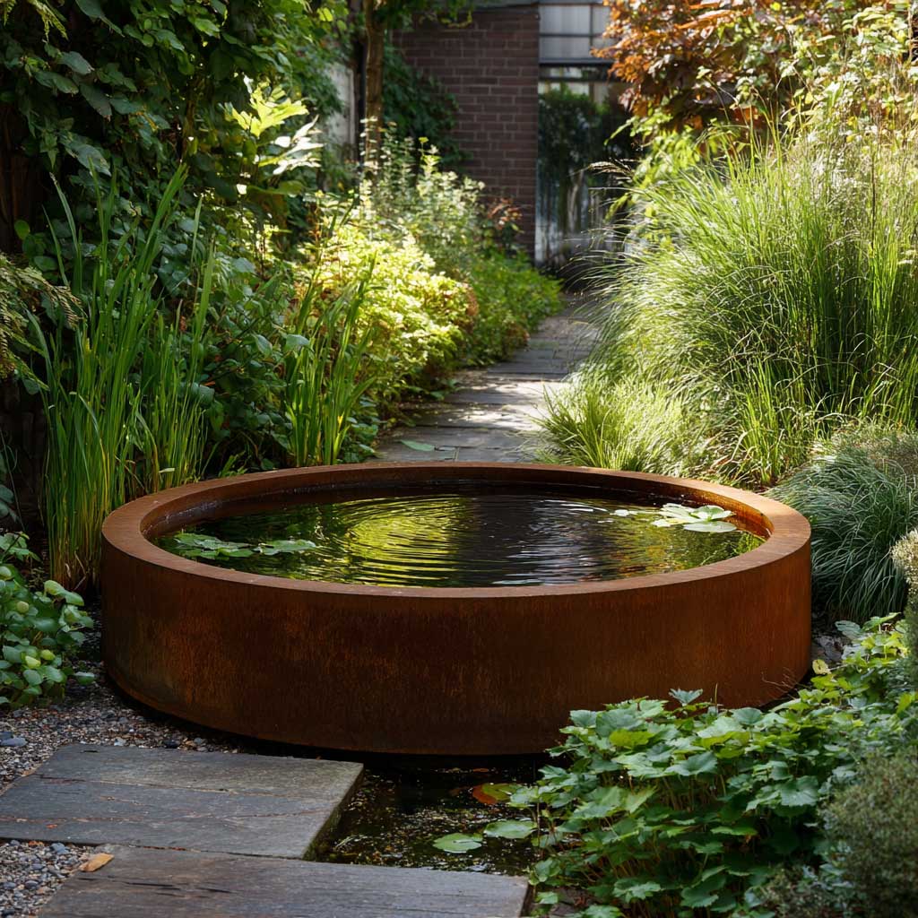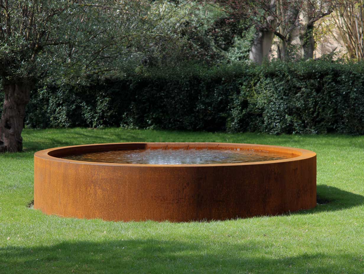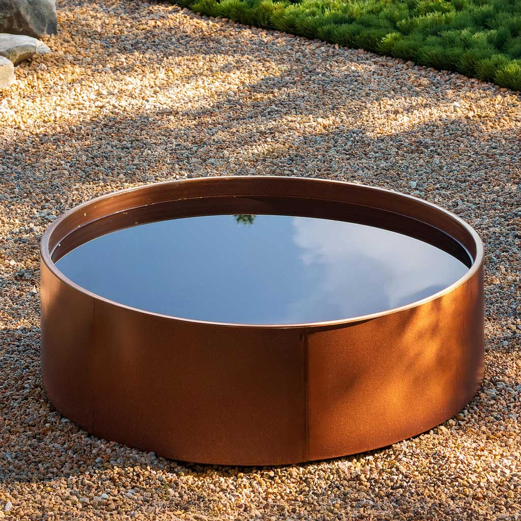 Ein herrliches, rundes Wasserbecken aus Cortenstahl in Premium-Qualität in diversen Größen