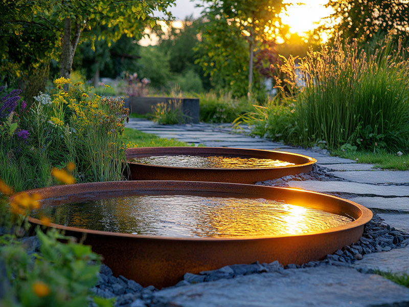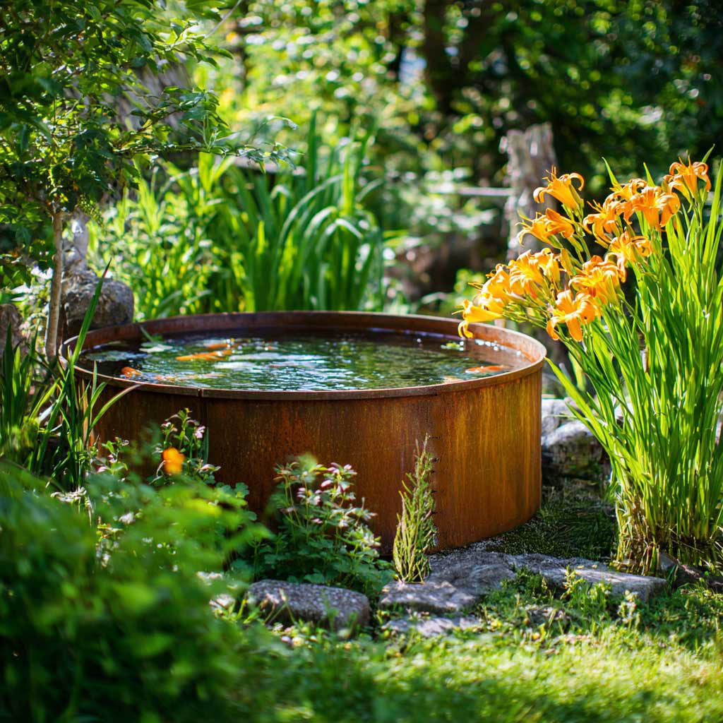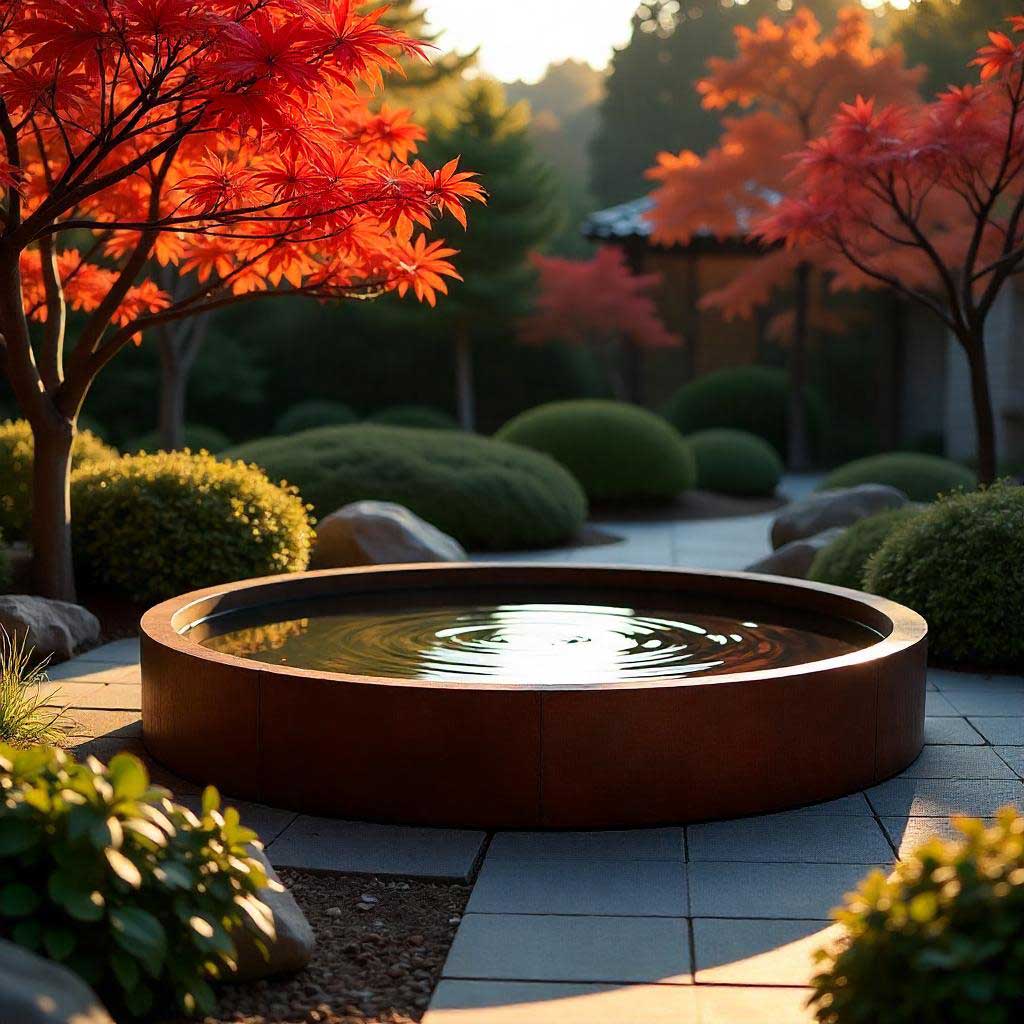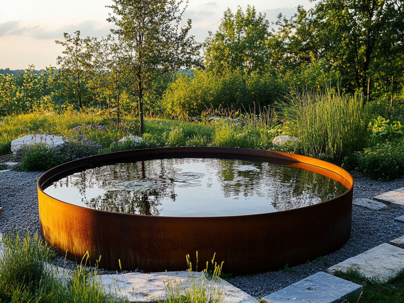 Ein herrliches, rundes Wasserbecken aus Cortenstahl in Premium-Qualität in diversen Größen